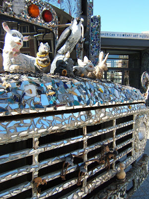 got back from baltimore a couple weeks ago, but haven't had the time to sit and process. i got to see a lot of amazing art while i was in the city. one of the first days that i was in b-more i stumbled upon the american museum of visionary art. i had planned on visiting but i was without the careful instructions that i'd left in my suitcase in falston. my friend patrick and i had just hit up the aquarium on the inner harbor, which was KILLER by the way, and he had to run to sound check at the 8x10 so i was left to my own devices in downtown bodymore mcmurderland. i love getting lost in a new city, its my favorite way to explore. i had my camera, a dead cell phone and my flip-flops so i was well equipped for an urban adventure. i took a stroll up to federal hill and was taking a nice stalkerish binocular view of michael phelps' million dollar penthouse on the inner harbor and a looked off to the east and this caught my eye: